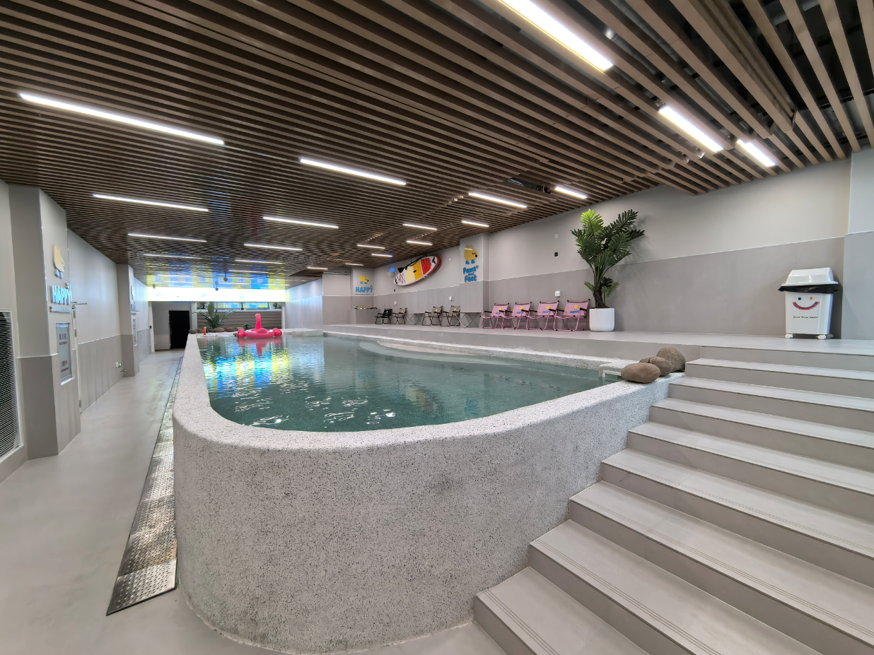 屬於市區封閉型寵物(wù)公園,區別於寶山 / 鬆江的戶外大泳池,普陀店主(zhǔ)打室(shì)內恒溫泳池;由我(wǒ)們團隊全案設計 + 專業施工,從場地規劃、結構選型、恒溫係統、水質處理、安全防護到配套功能區(qū)一體化落地,打(dǎ)造(zào)上海市區內寵物友好、四(sì)季恒溫、高(gāo)標準(zhǔn)的寵物遊泳空間。